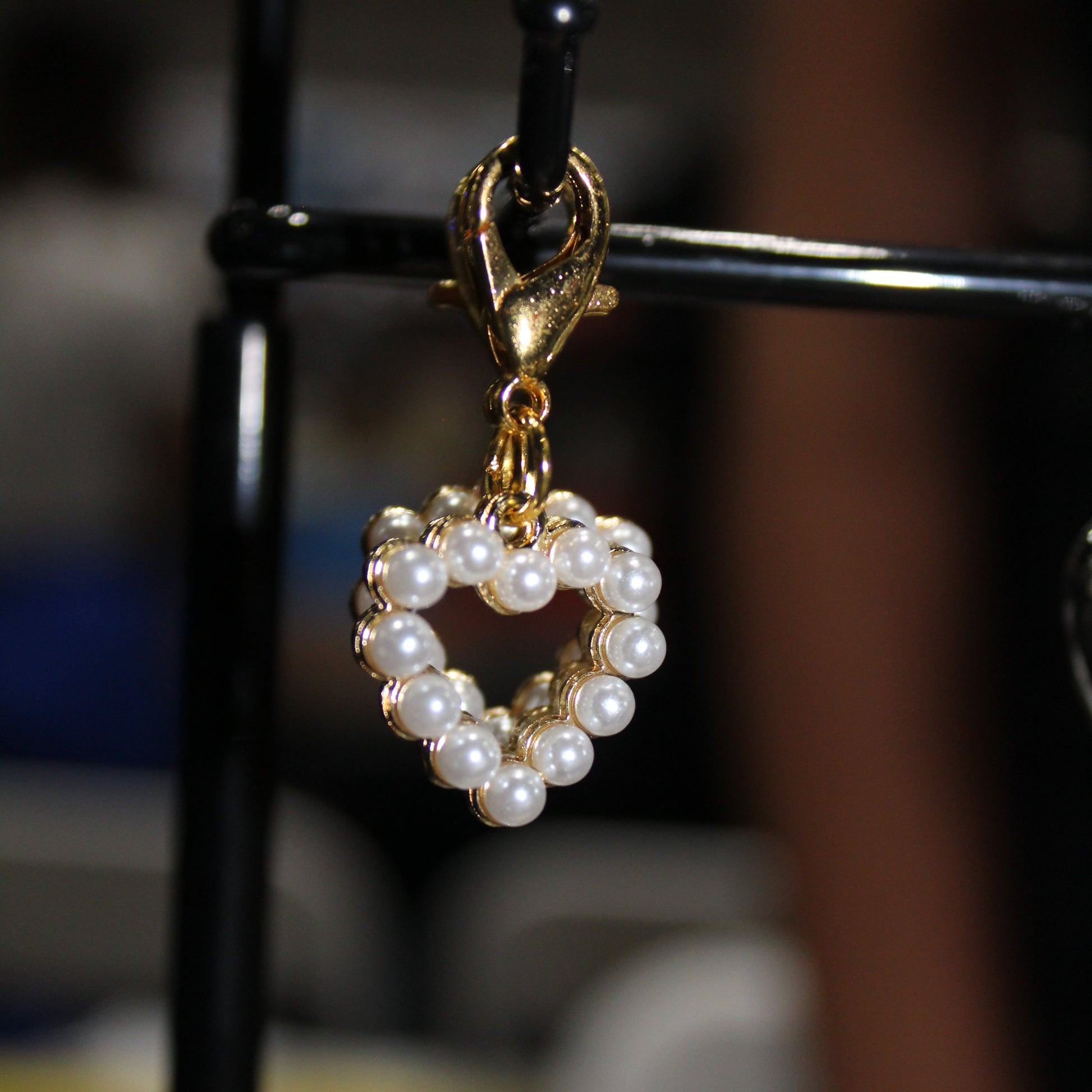 Mini Pearl Heart outline with golden lobster claw