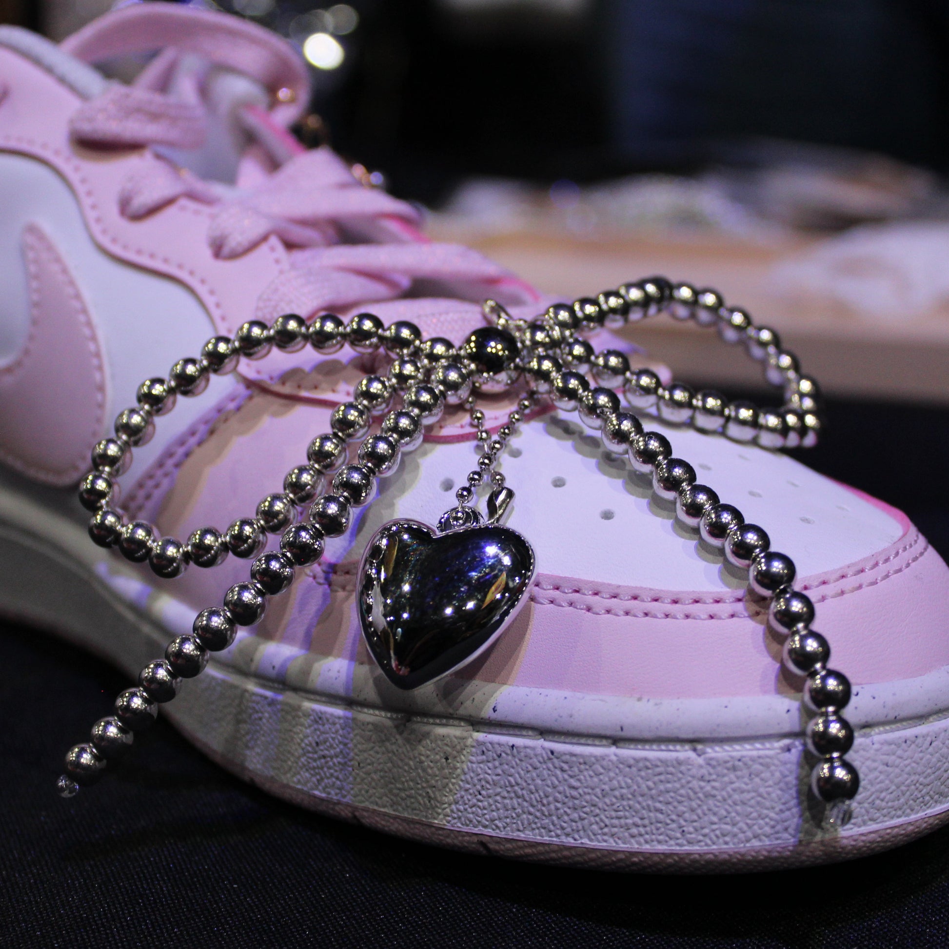 Silver Bowknot & Heart Sneaker Pendant with silver lobster claw
